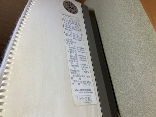 その先輩とは1992年生まれのシャープ製のエアコンです。