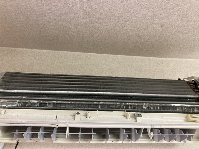 エアコンはこのホコリがついている熱交換器という部分に空気が接触した時に空気中の熱を奪って冷たい空気を吐き出します。