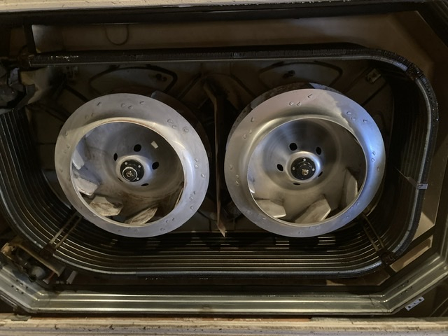 最近の普通の天井埋込4方向エアコンは正方形で送風ファンが1つですか、今回のエアコンは大きな長方形で送風ファンが2つもついていました!