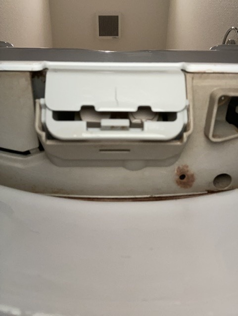 ウォシュレットなどの細かいところは酸性洗剤をつけた歯ブラシなどで叩くように擦ると取れやすいです。