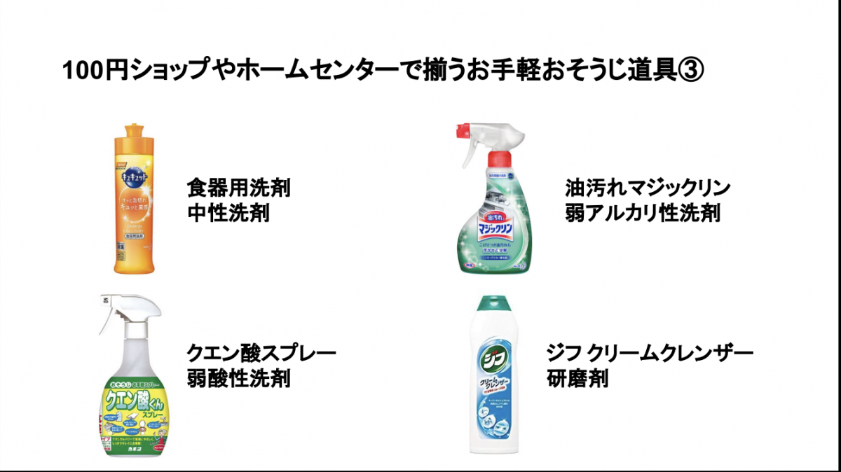 以上が持っておくとお掃除に役立つ簡単に手に入る道具と洗剤です。