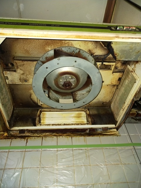 お客様曰く、レンジフードはこまめに掃除してたけど少しサボったうちに汚れも固くなって取れなくなってしまった。とのことでした。