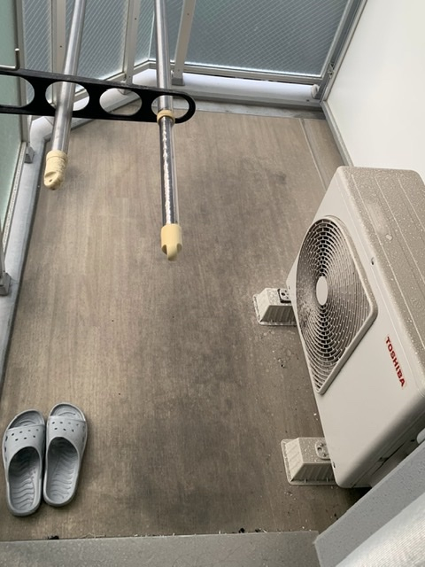 エアコンと室外機も一緒にご注文いただいたのですが、どうしても汚れが気になるとのことでベランダもやらせていただきました!