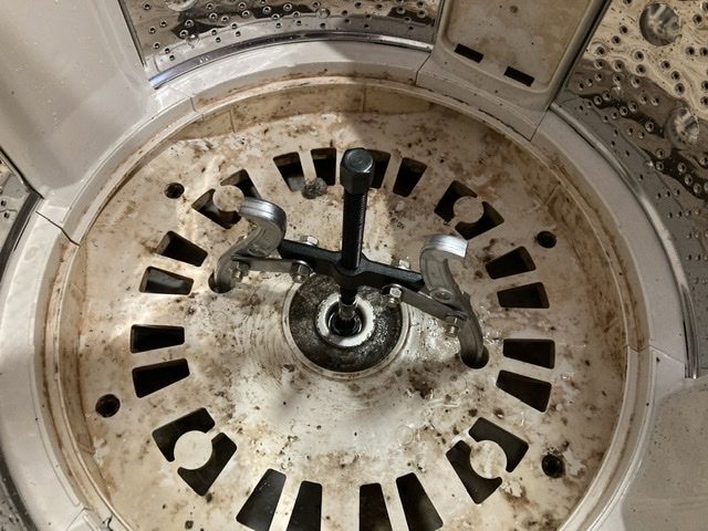 ですのでこのギアプーラーという工具で洗濯槽を持ち上げます!