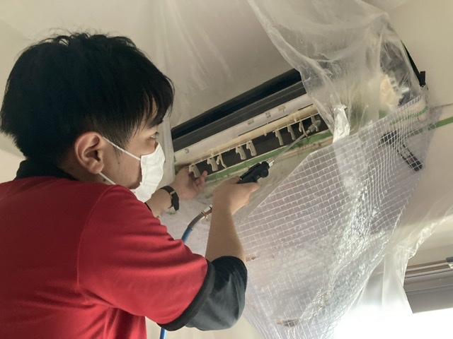 それで今回は実際のおそうじ革命京都南区吉祥院店のエアコン清掃の流れを写真が少し撮れたので紹介したいと思います(^ω^)