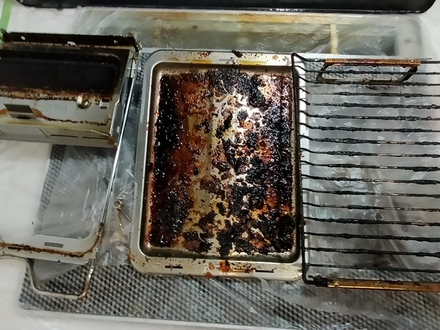 ただ魚焼きグリルも最後の意地で端っこに固まった汚れで対抗してきます。