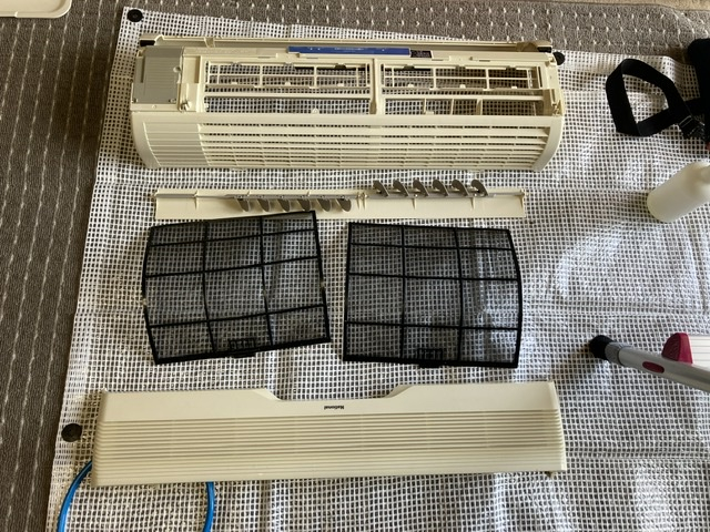 古いエアコンで故障のリスクはありますがしっかり養生をして丁寧に洗浄していきます!