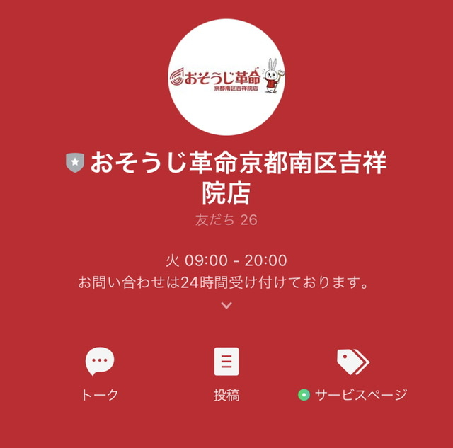 おそうじ革命京都南区吉祥院店では公式LINEアカウントを運用しています!