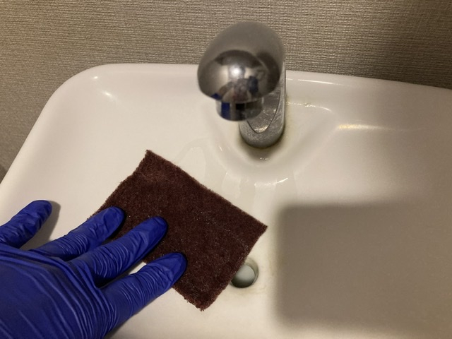 擦ると水垢があるところはザラザラしていますが段々とツルツルの感覚になっていきます。