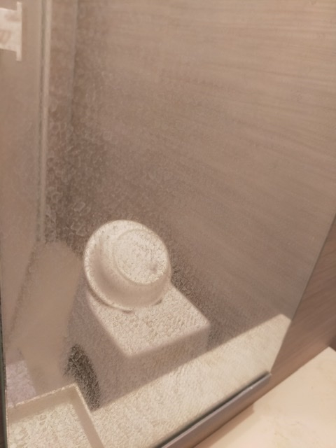 お風呂の鏡の水アカ!研磨剤で落とします!