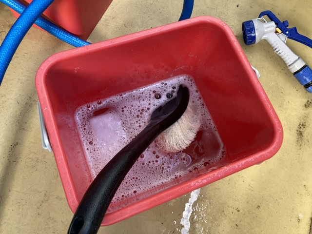 その洗浄液と洗車ブラシを使います!