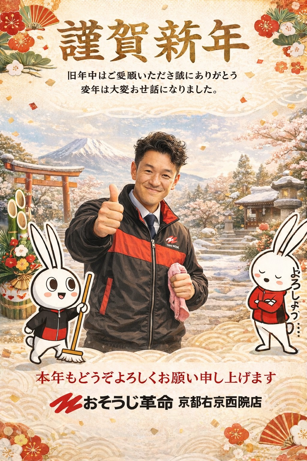 謹賀新年2026年 おそうじ革命京都右京西院店よろしくお願い申し上げます。