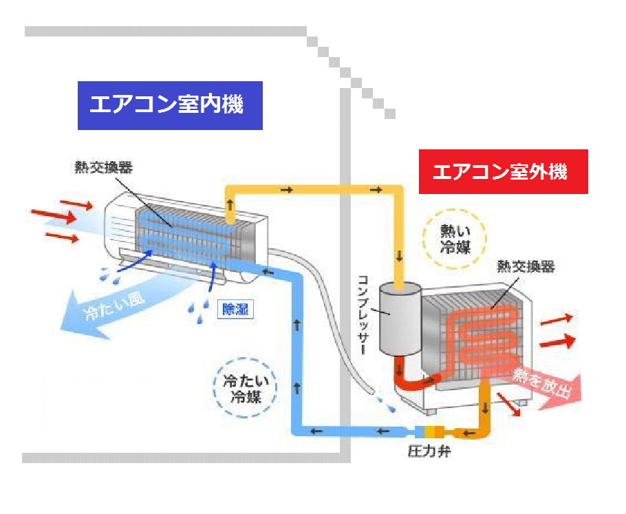 エアコンはどうやって室内の温度を下げるのか?(エアコンの仕組み)