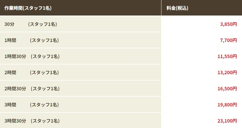 【料金早見表】画像付きでひと目でわかる!