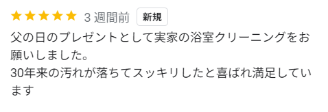 父の日のプレゼントとして実家の浴室クリーニングをお願いしました。