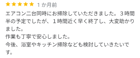 初めてのエアコンクリーニングでしたが また機会があればお願いしたいです。