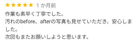 汚れのbefore、afterの写真も見せていただき、安心しました。