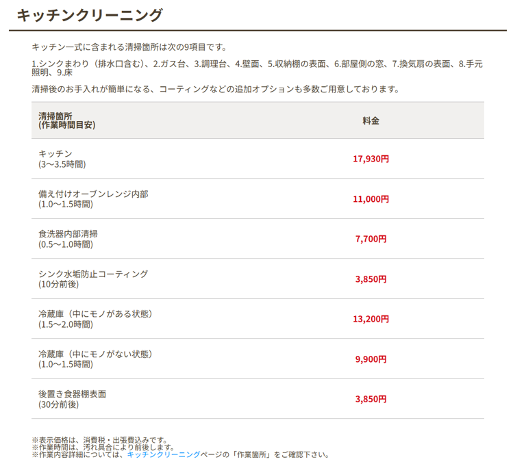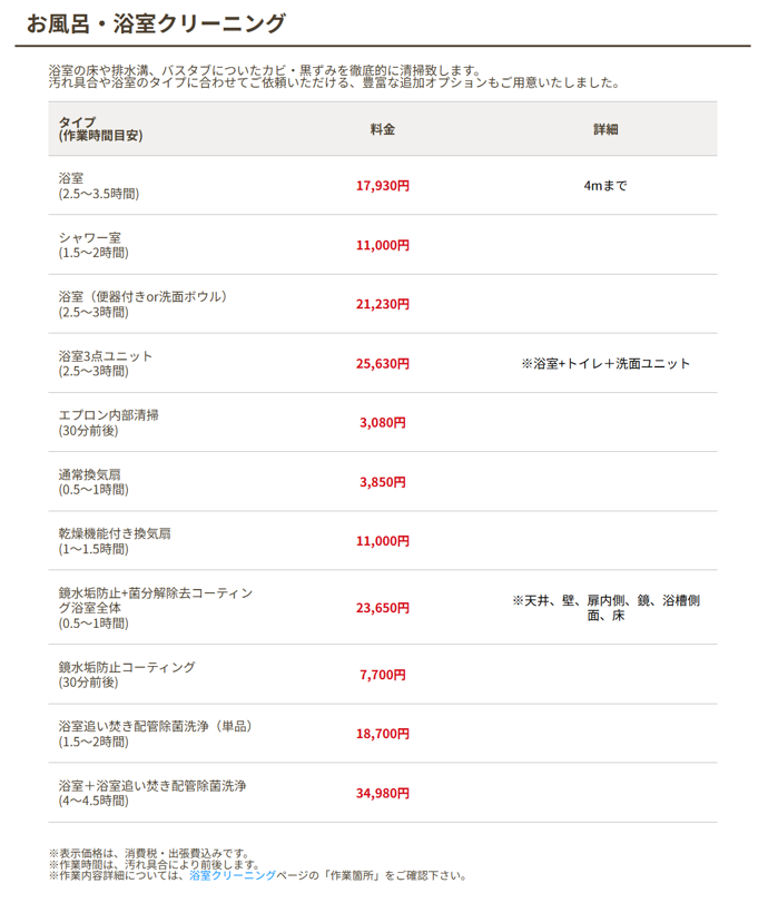 料金詳細一覧