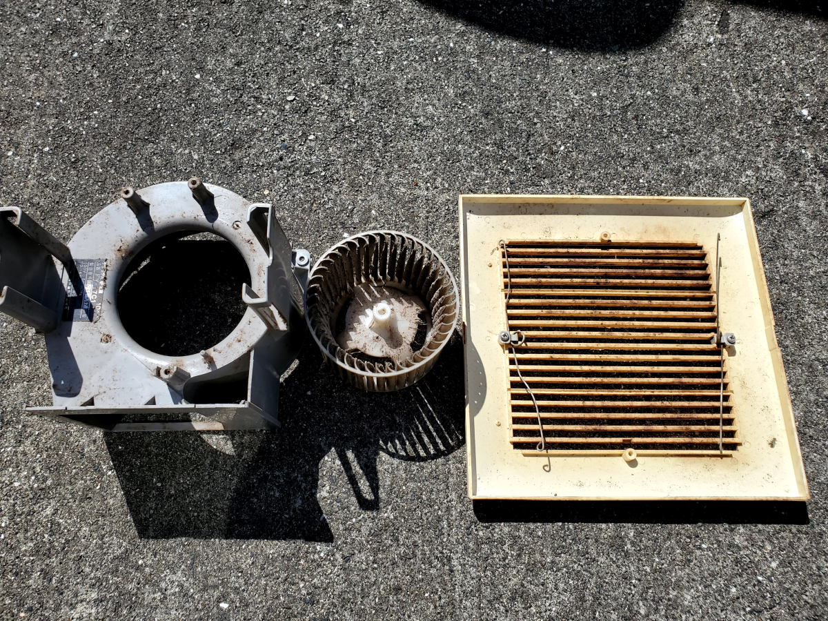 浴室の換気扇は分解して、カビやホコリを徹底的にキレイにします。