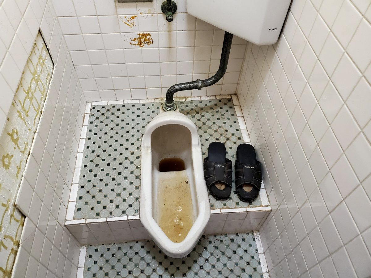 水の元栓をひねると水は止まらず、壁面のタイルは剥がれ落ち、