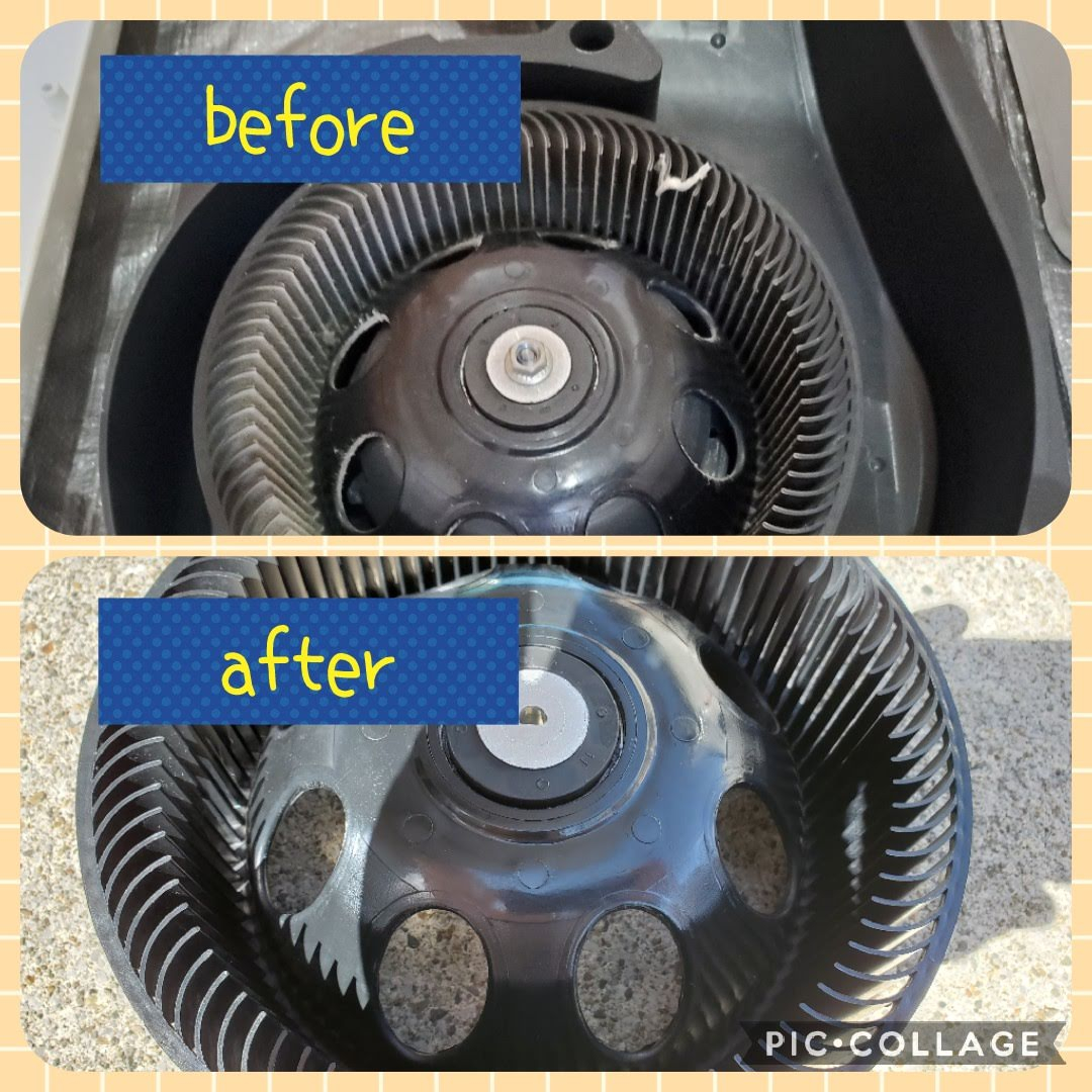 当店では完全分解を行い、フィルターはもちろん、給水タンク、送風ファン