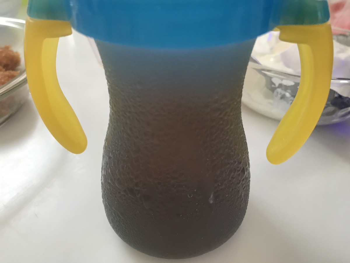 写真(息子の好きな冷えた麦茶)のような感じ、普段でもよく見る風景ですね。暖かい空気を取り込んだ時に冷えた熱交換器(アルミフィン)に当たると冷えたお茶の入れ物みたいな状態になり空気中の水分を取り除く事が出来ます。