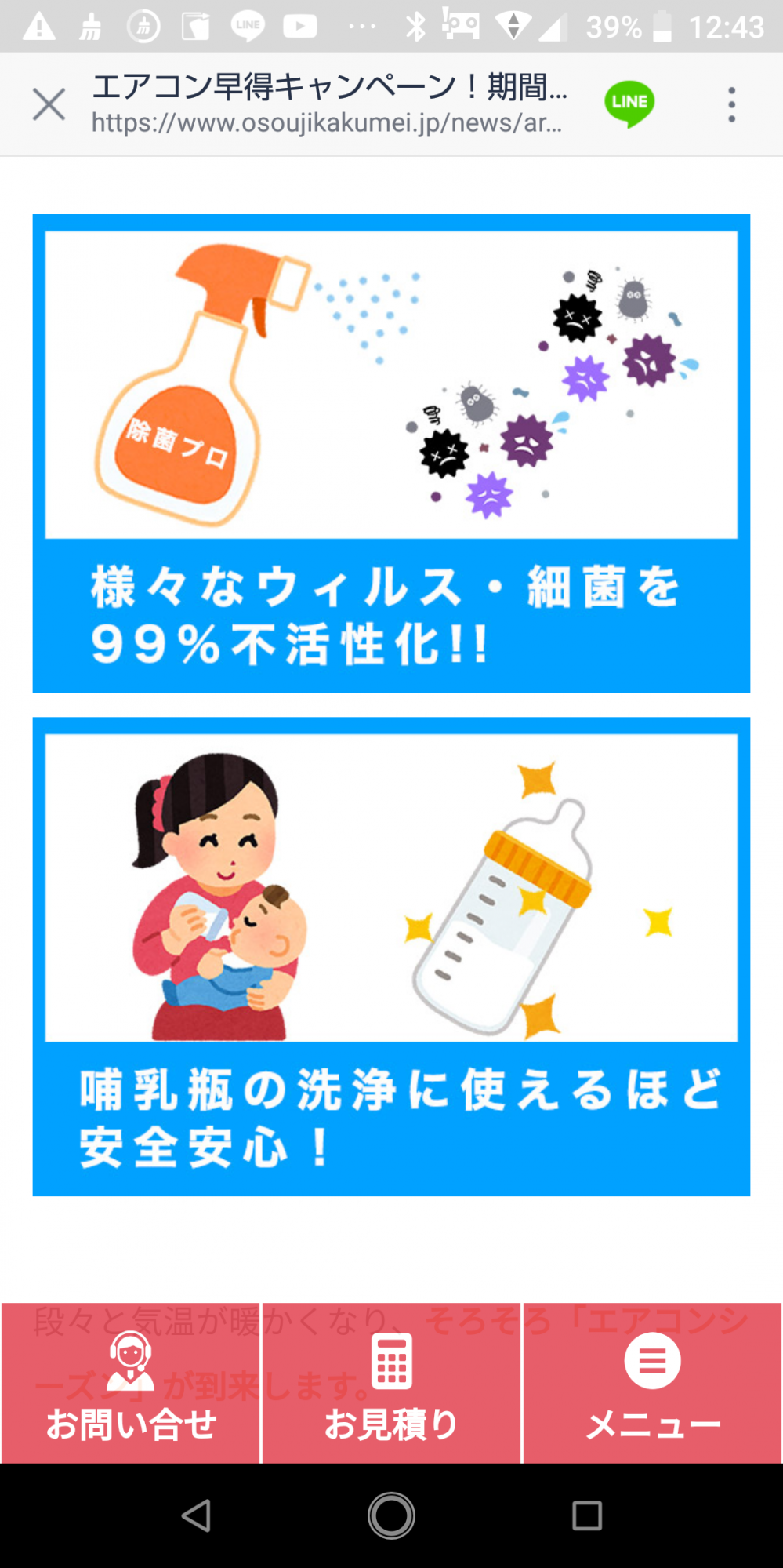 ※設置されているエアコンまでの高さが2.5m以上の場合は、作業できない場合がございます。