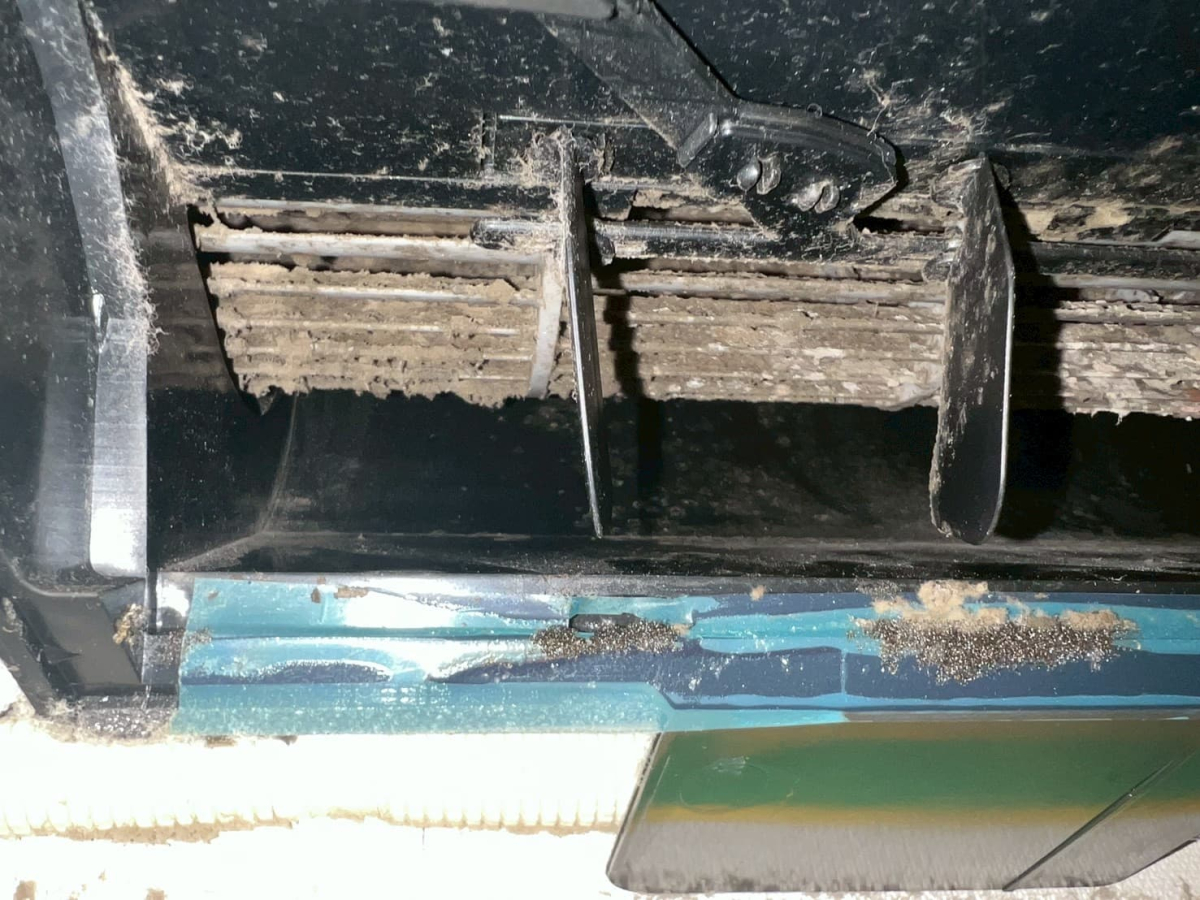 ワンちゃんがいらっしゃるのもあり、毛などが吸い込まれて余計に汚れてしまっていますね。