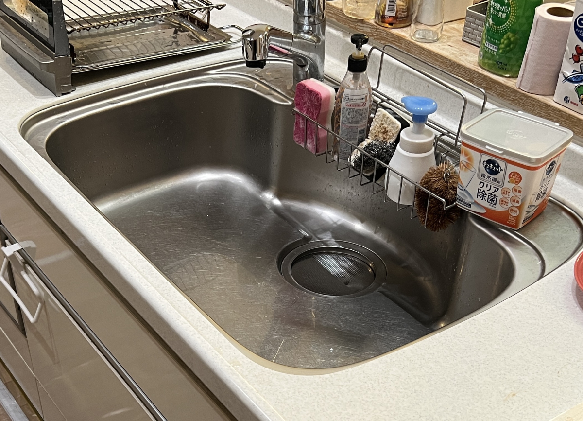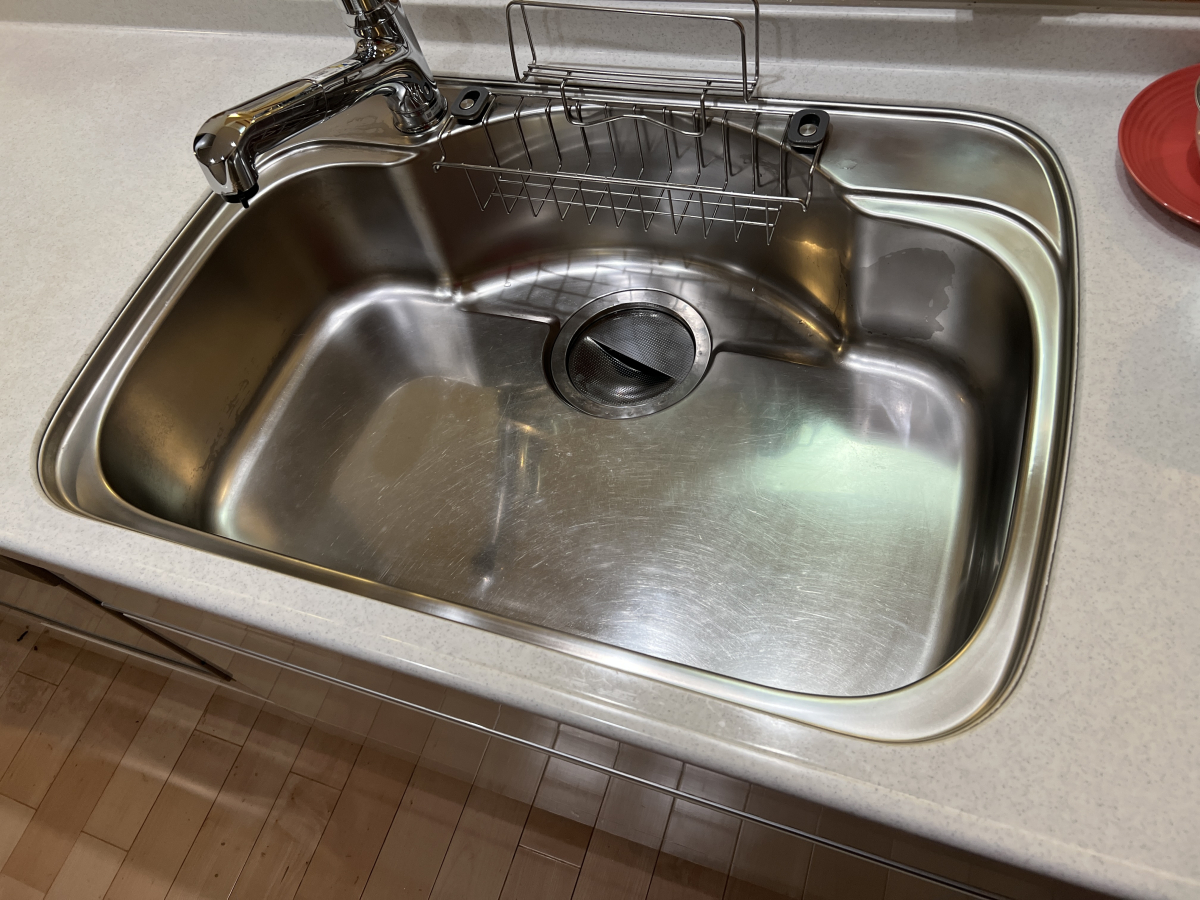 シンクも水垢や細かな汚れがありましたが、研磨剤を使って全体を丁寧に磨き上げました。