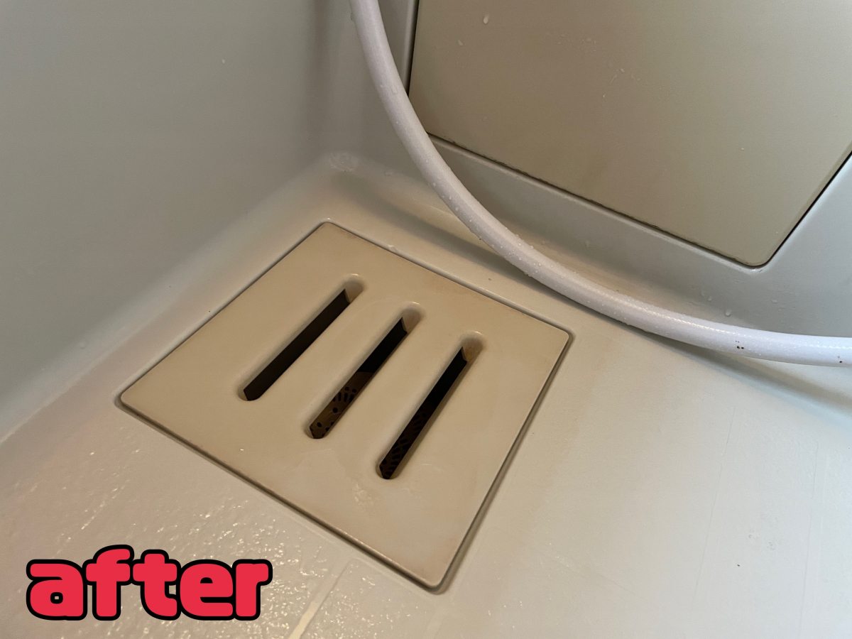 排水溝のフタの汚れは一見落ちないかと思いきや、なんとか落とせました!