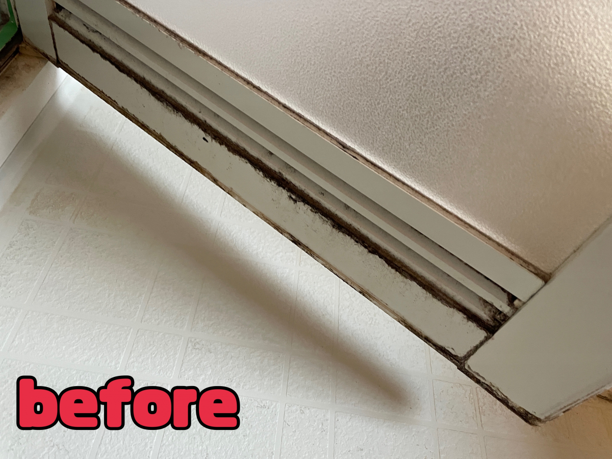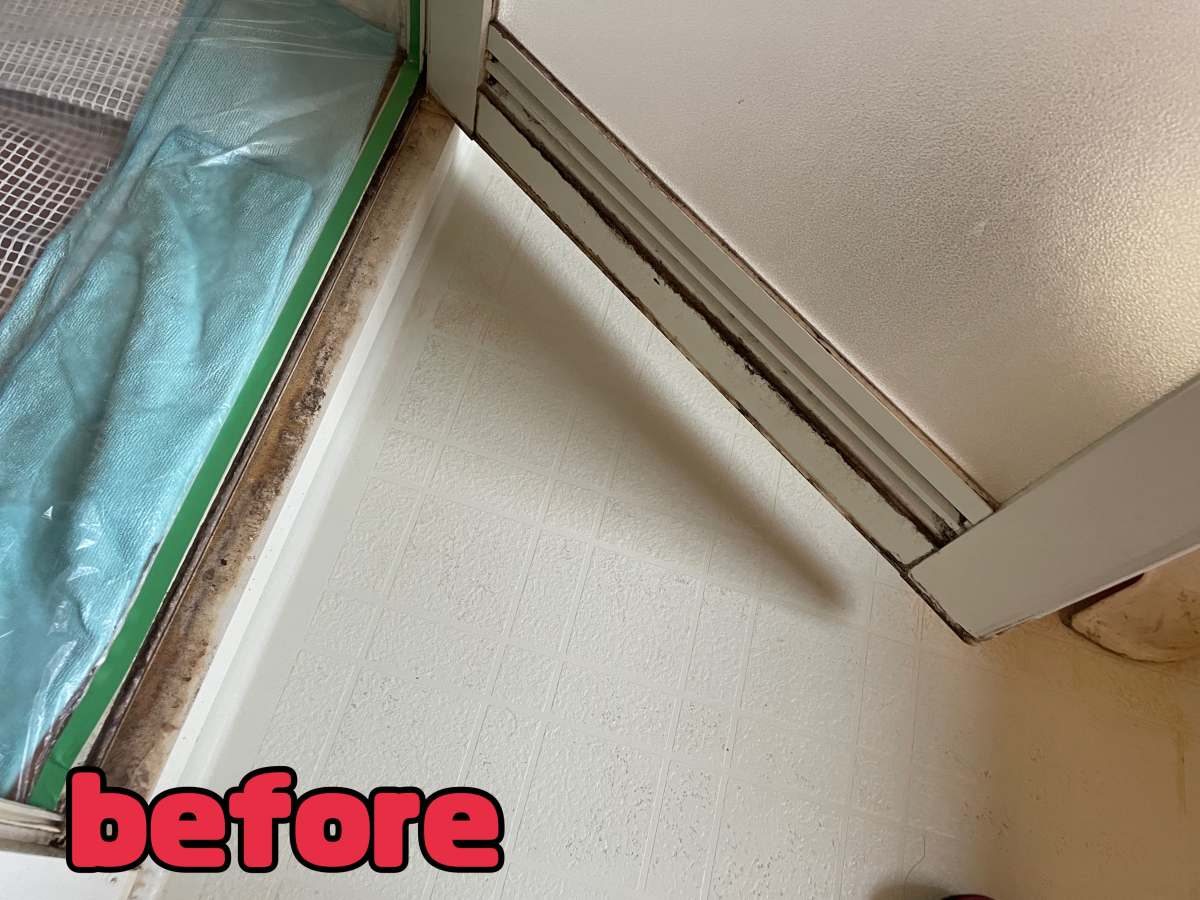 【勝利】浴室の扉周りの水アカとカビ