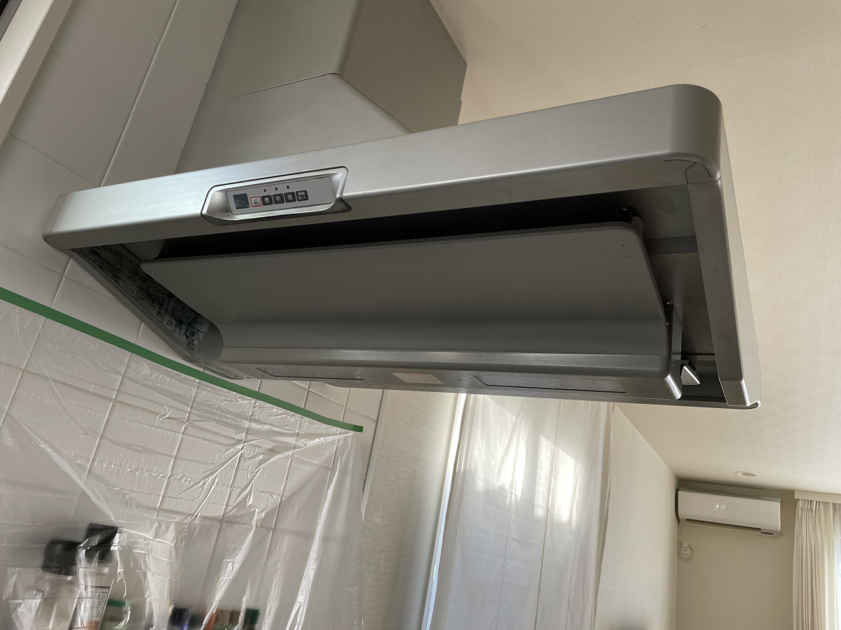 初めて見るタイプのレンジフードだったので、分解に少し手間取ってしまいました(^◇^;)