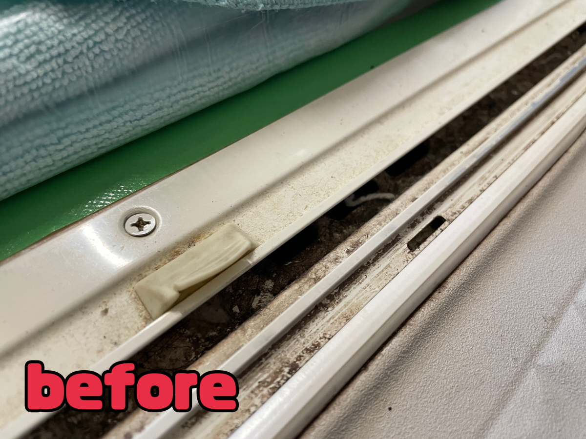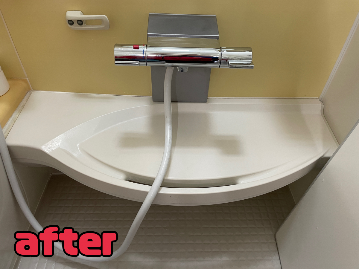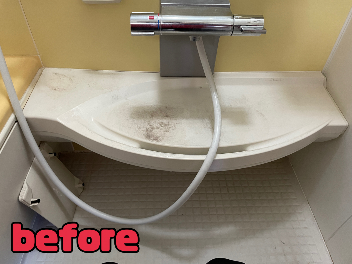 お客様が浴室扉の溝とカウンターの汚れを特に気にされていたので、