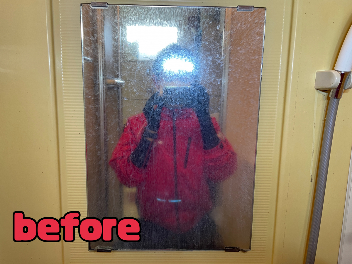 鏡は水垢がびっしりで、自分の姿がほとんど映りませんでした_| ̄|○