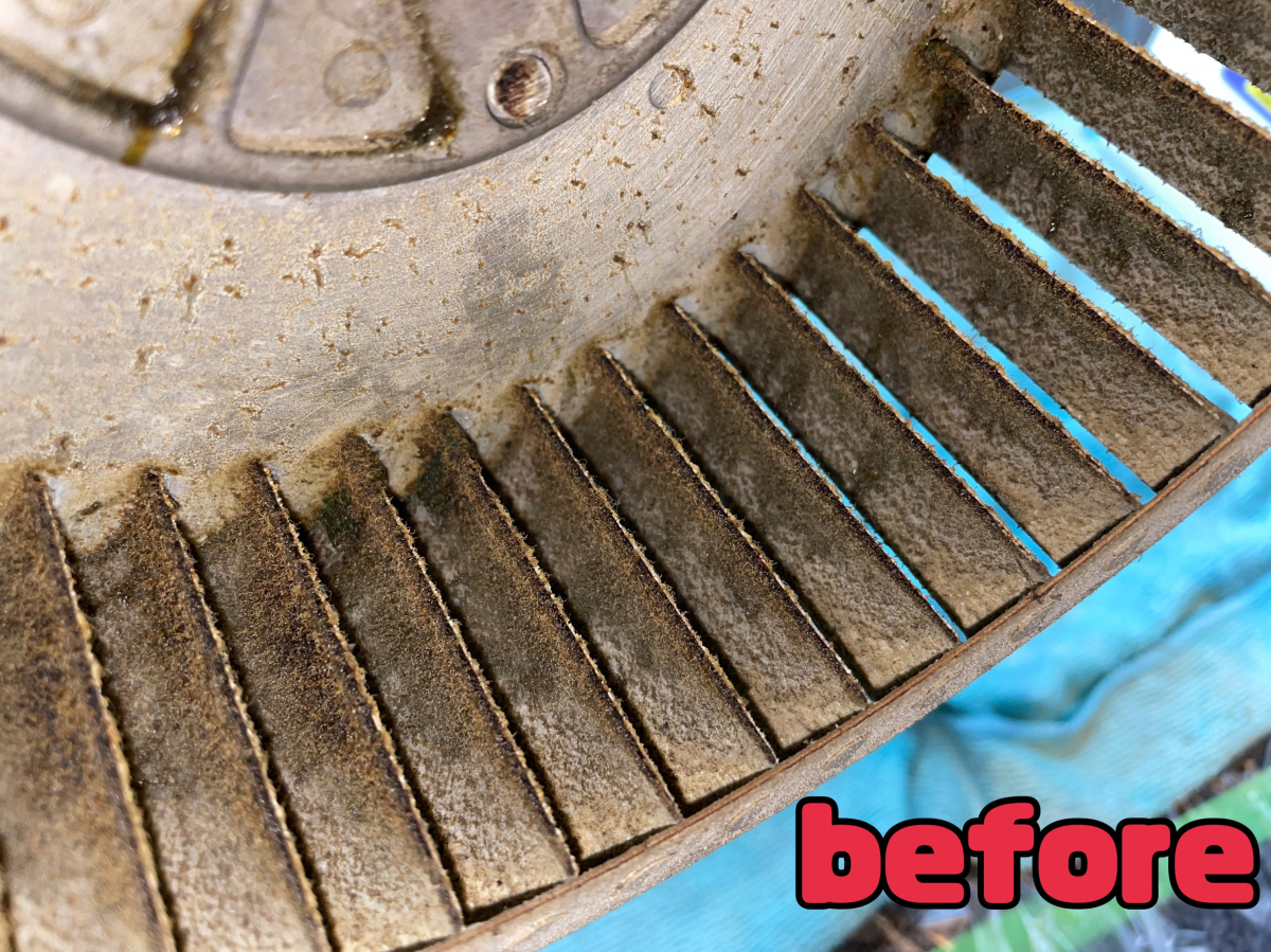 シロッコファンもかなりガンコな油汚れがついていましたが、必殺技で撃退!!