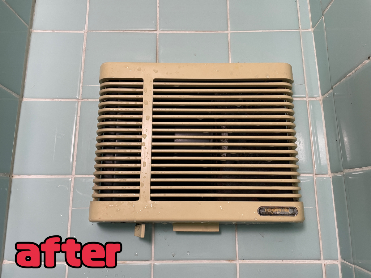 タイルの目地と天井ににかなりカビ生えておりましたが、なんとか落としてきれました(o^^o)