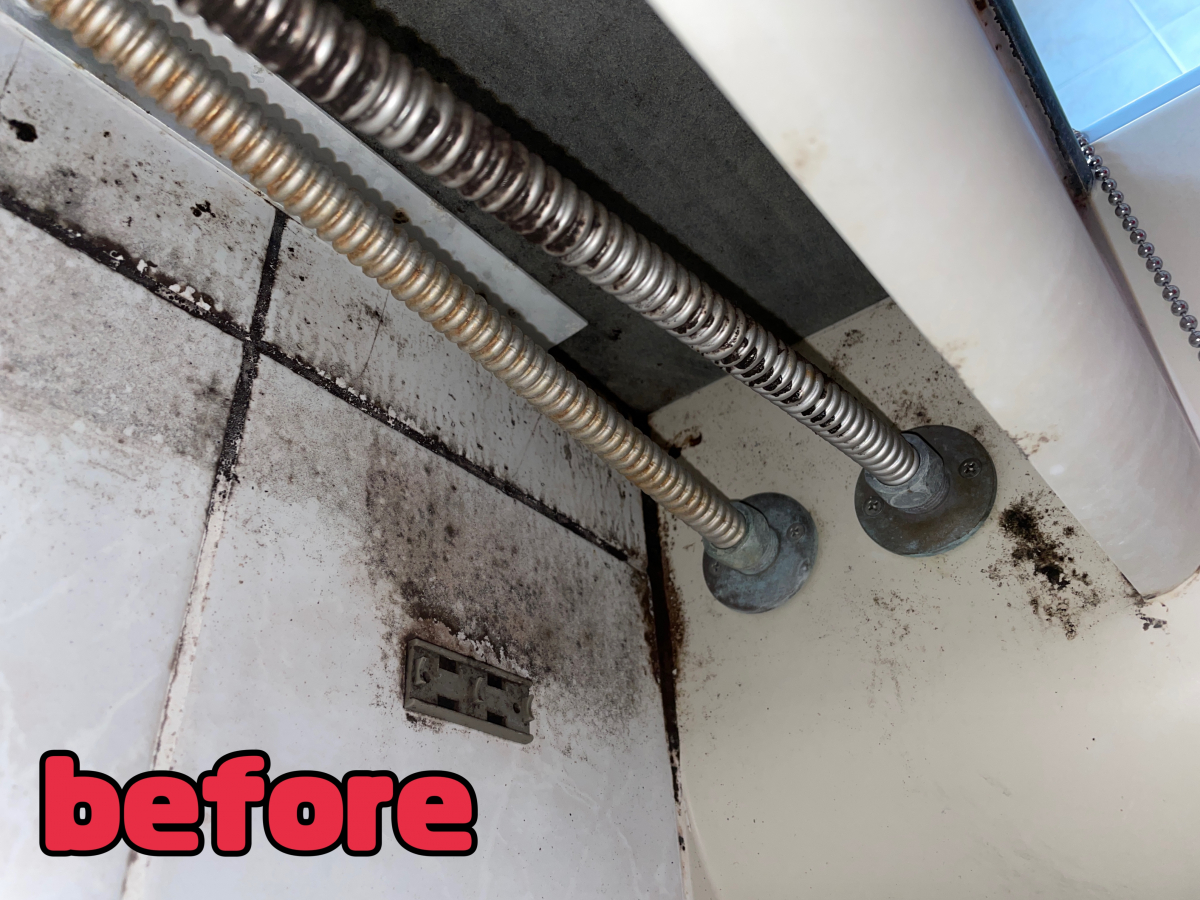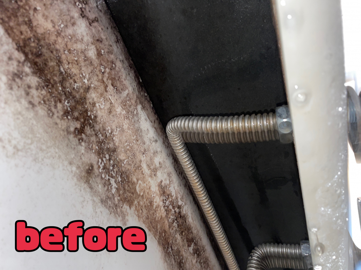 ある日カウンターの裏を除いてみるとカビがびっしりで、これは自分ではどうしようもないということでご依頼いただきました!