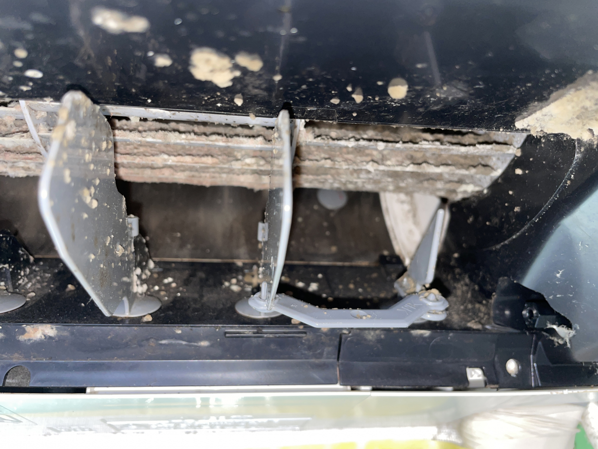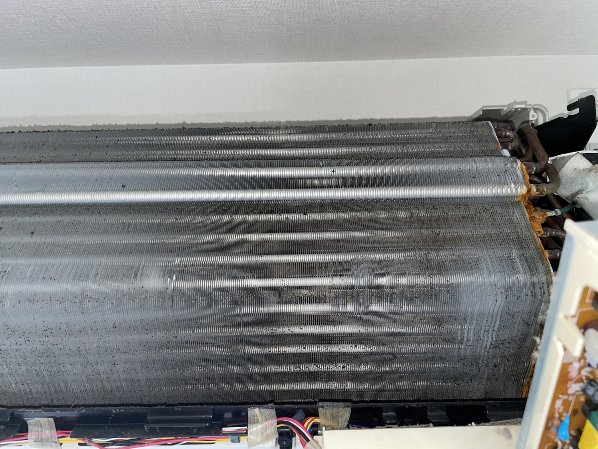 パッとみ綺麗に見えるこちらのエアコンですが分解してみると、、