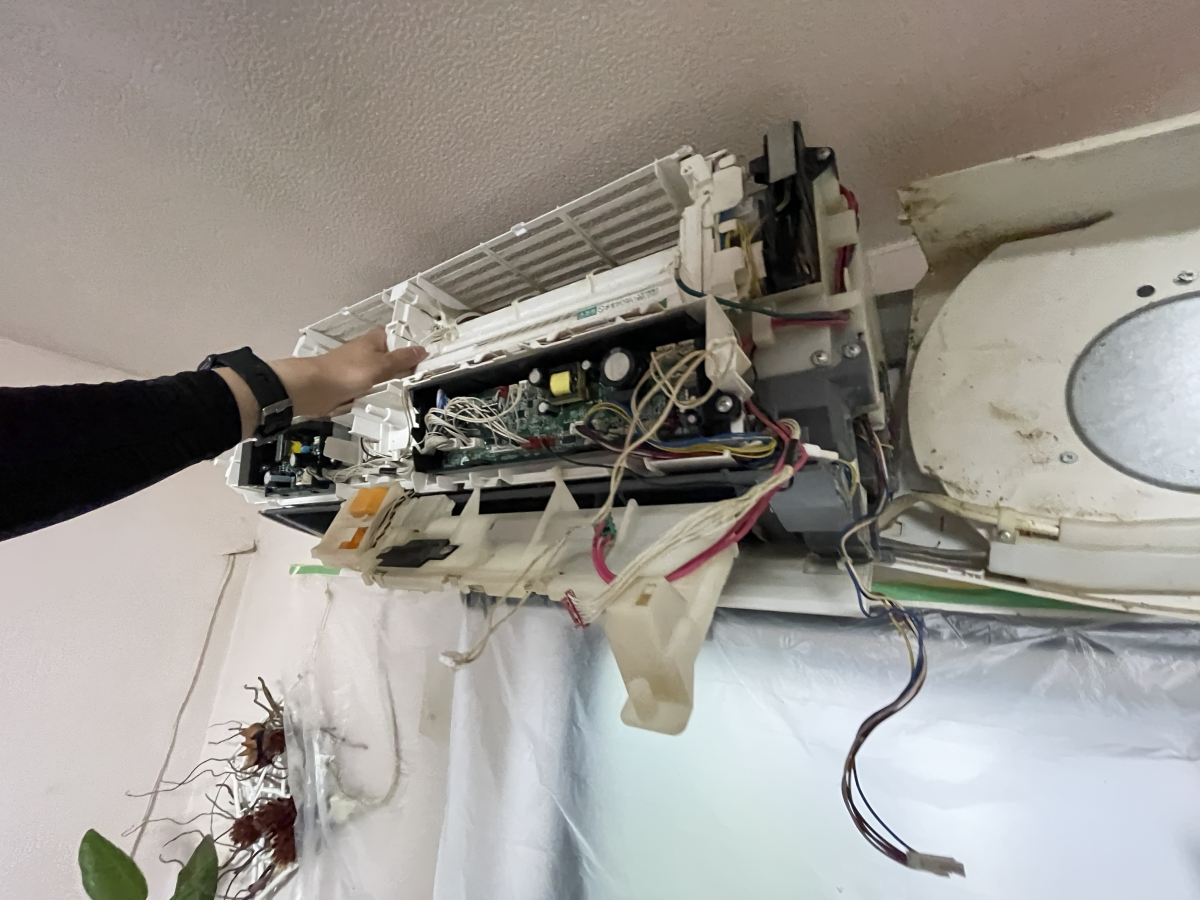 【春日井市】お掃除機能付きエアコンクリーニング!油がべっとり!サイドファン!