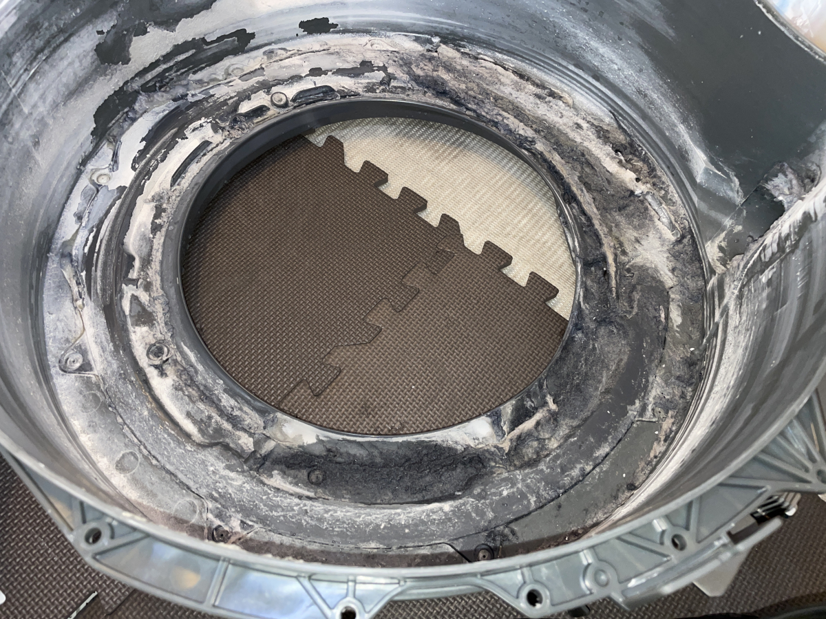 洗濯の際に毎回乾燥を回していることもあって、洗濯槽にはカビ汚れは全くありませんでしたが、かなりの洗剤カスが付着しておりました(^◇^;)