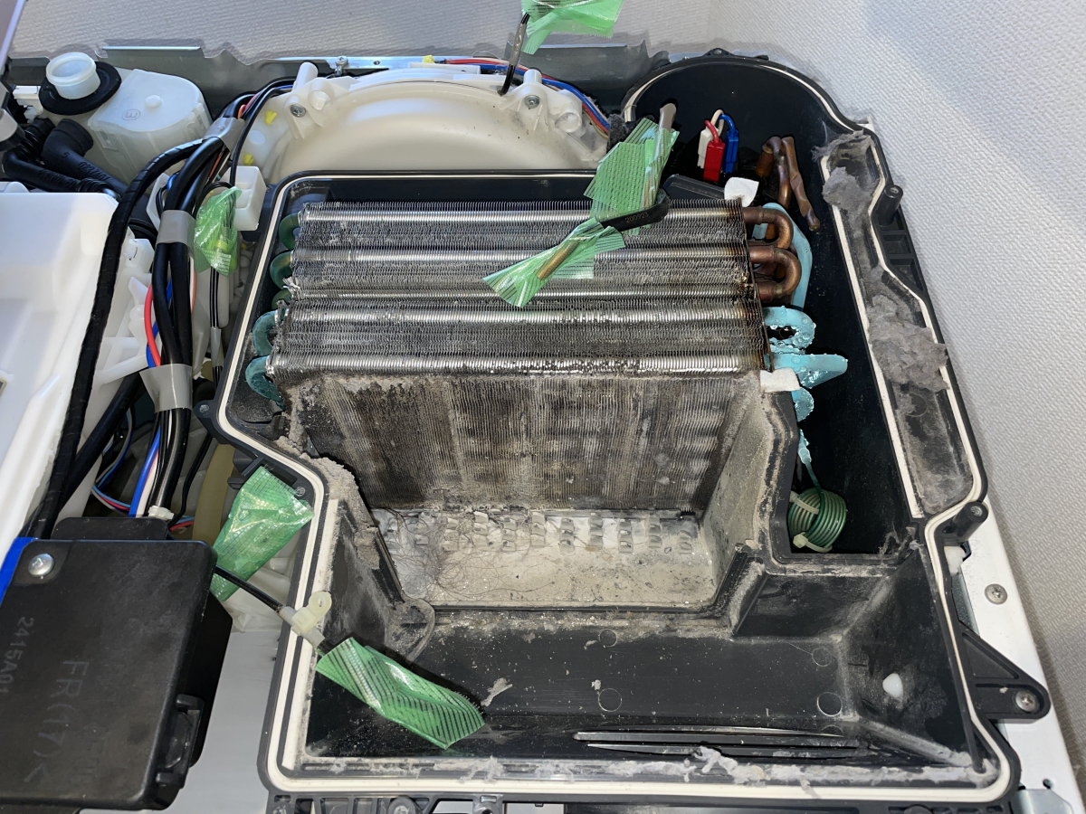なので、この熱交換器の表面が汚れてしまうと、やはり乾燥不良の原因となります。