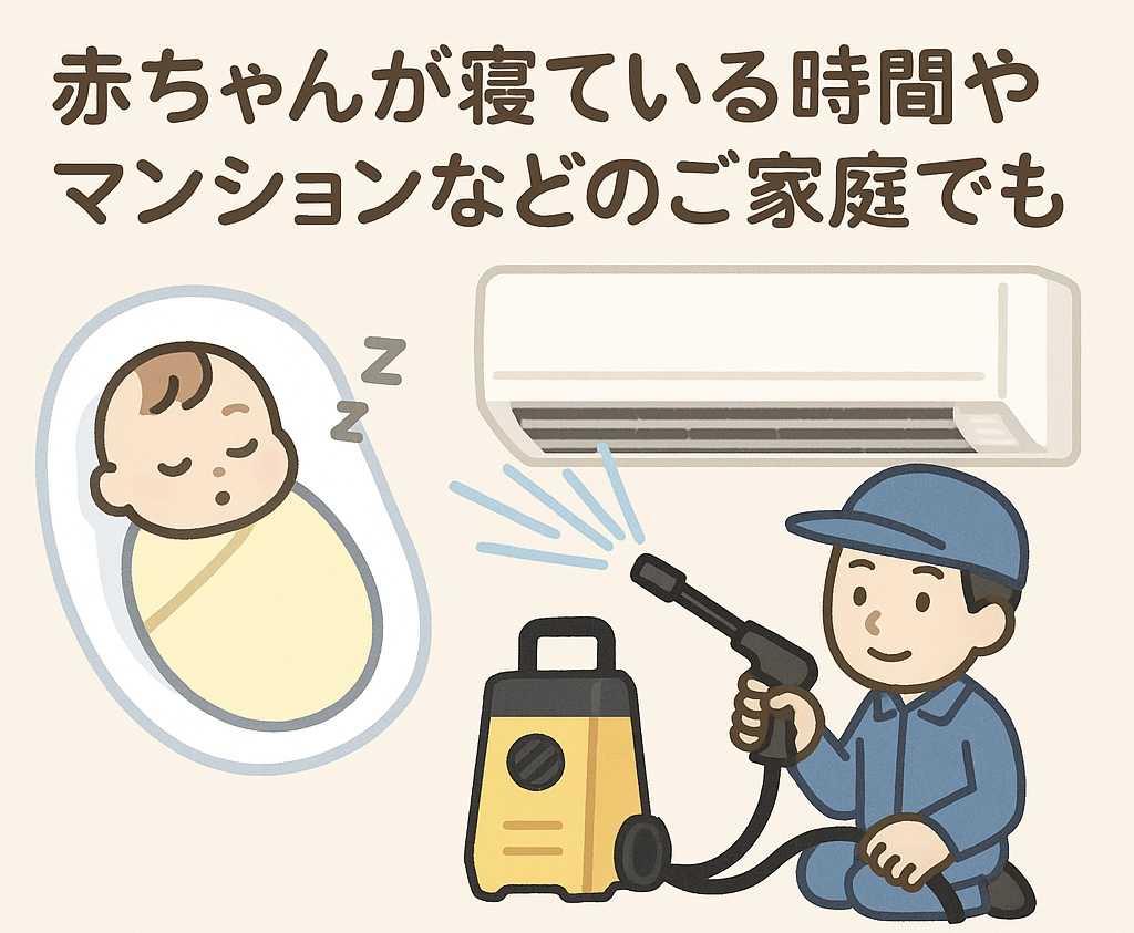 赤ちゃんが寝ている時間帯や、マンションなどの集合住宅でも安心。