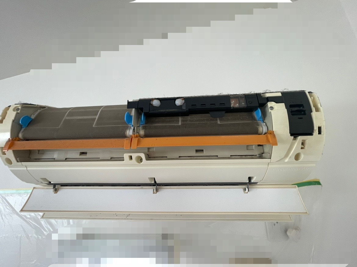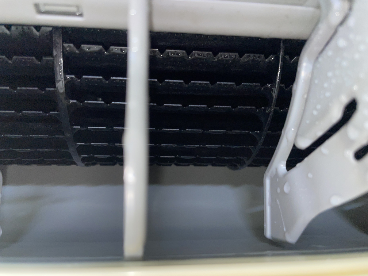 リビングに設置されていたエアコンであったため、内部に油汚れがかなり付着しておりました。