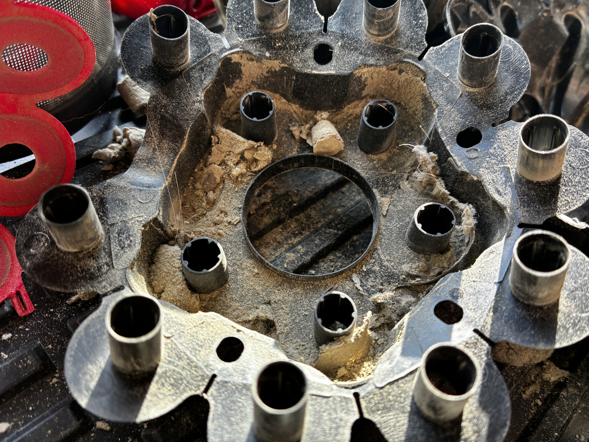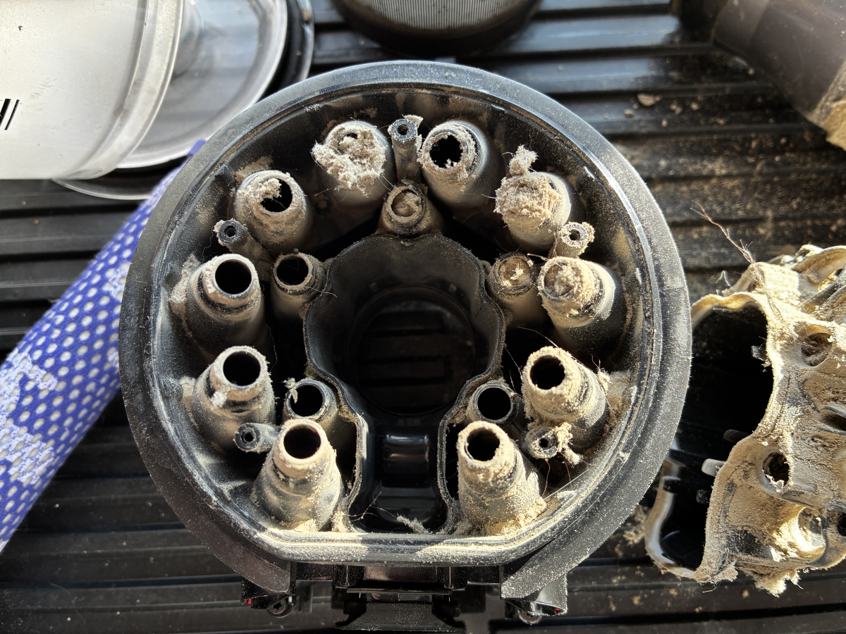 ↓実際に犬の抜け毛が大量に詰まったサイクロン内部の写真