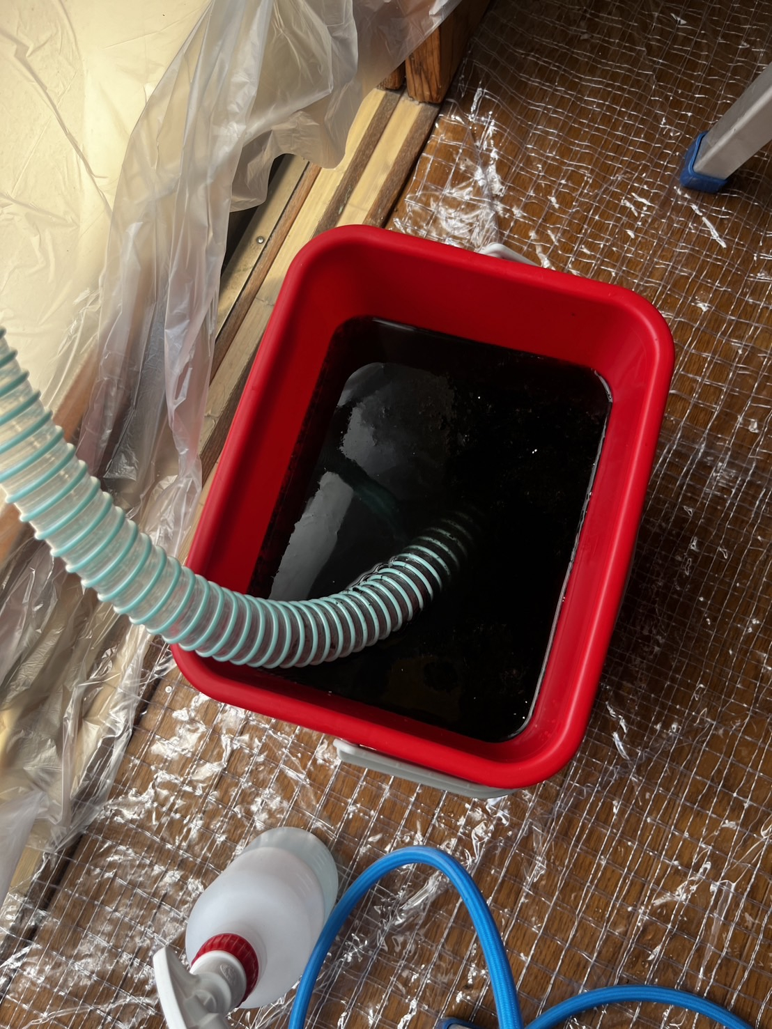 5年分の汚れです。かなり真っ黒、ペール3杯分しっかりよごれをおとしました。