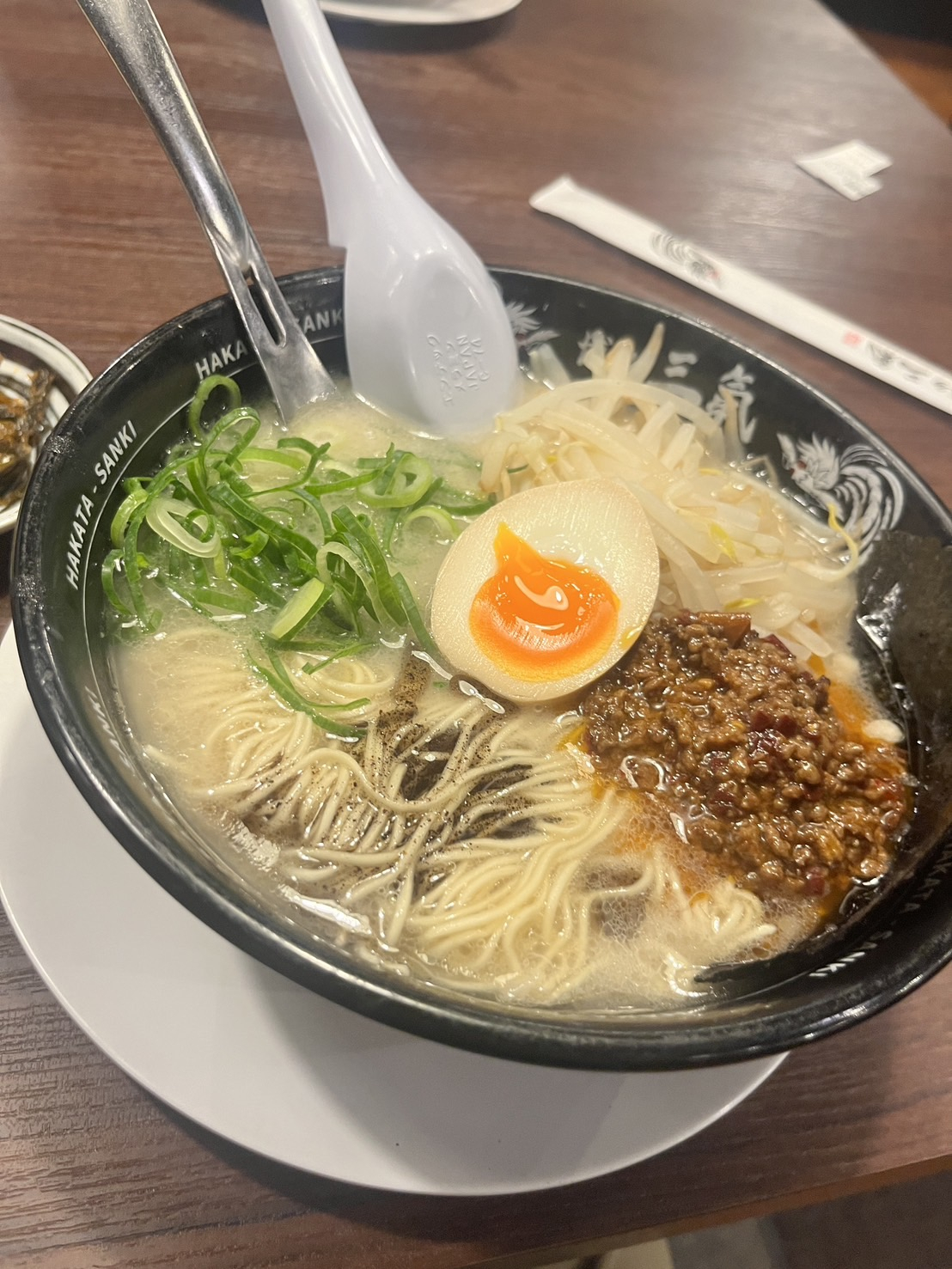 とにかく滞在時間が限られていたため、何はなくともせっかくの博多ですから豚骨ラーメンを食べたいと思い「博多ラーメンShinShinさん」へ行ってまいりました。