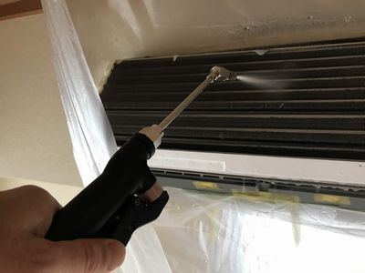 水を先端から勢いよく吹き出して、エアコンの中に潜んでいるヤツらを