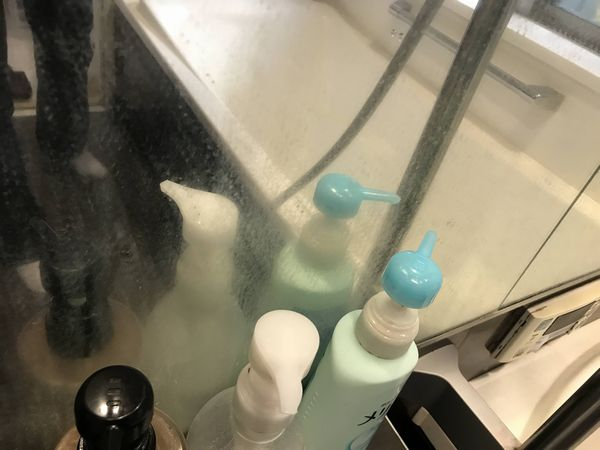 鏡は白く曇ったり、シャンプー台も石鹸のあとが消えなかったりとか