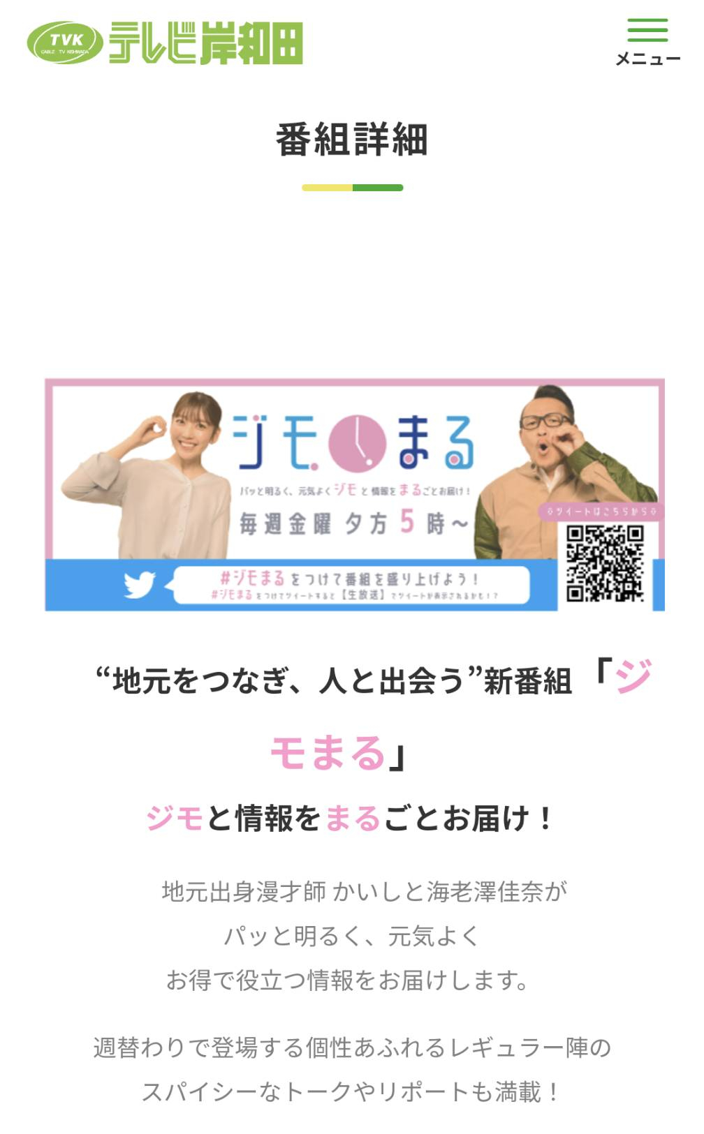 本日、17時からテレビ岸和田の情報番組【ジモまる】に