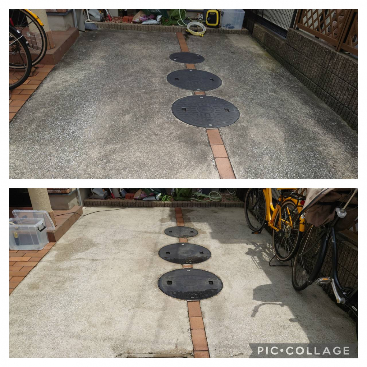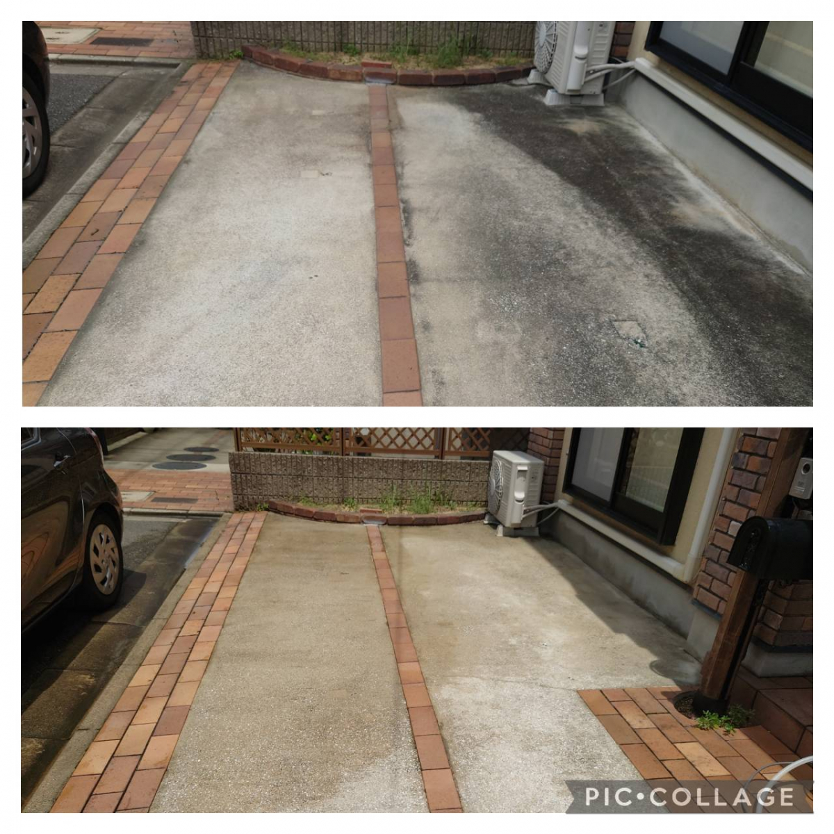 ご依頼内容はご自宅駐車場の黒ずみを取ってほしいとの事。